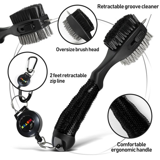 [Super czyszczenie] Szczotka golfowa została zaprojektowana z dwiema szczotkami i wysuwanymi ostrzałkami, aby całkowicie usunąć uporczywy brud i błoto.
