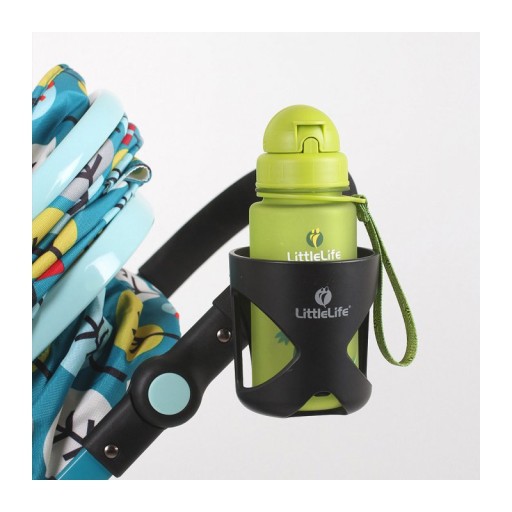 Specjalny uchwyt do wózka pasuje do większości butelek i kubków. Uchwyt posiada specjalną rączkę, za pomocą której możemy przyczepić go do każdego wózka. Specjalny mechanizm, umożliwia płynną regulację pozycji kubka, dzięki czemu nie musimy martwić się, że nasze napoje się wyleją.