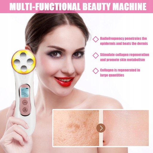 1. Funkcje 5 w 1: głębokie czyszczenie, podnoszenie, wprowadzanie, przeciwdziałanie starzeniu, usuwanie trądziku. Zastosuj RF, EMS, wibracje akustyczne i światło LED, dbaj o skórę twarzy.