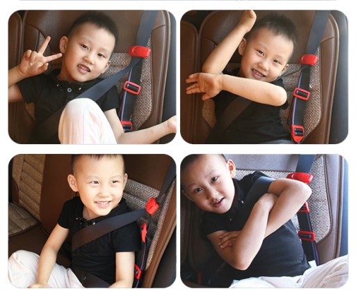 Ochronny regulator pasa bezpieczeństwa: antypoślizgowy hak i klamra pasa bezpieczeństwa, zapobiega utknięciu szyi dziecka i poprawia postawę siedzenia dziecka.