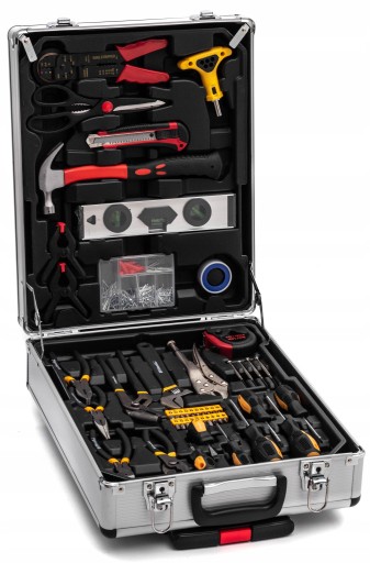 - 3 oddzielne solidne tace z narzędziami oraz zamknięcie walizki