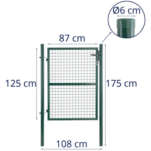 Wysokiej jakości metalowa furtka ogrodowa firmy Wiesenfield jest odporna na warunki pogodowe. Łatwo ją zamontować, by ochronić ogród, taras, trawnik lub wybieg przed niepożądanymi gośćmi. Bramka ogrodowa o wymiarach 109 x 175 cm wykonana jest z wysokiej jakości stali malowanej proszkowo, która chroni bramkę przed rdzą i promieniowaniem UV. Solidne słupki mają średnicę 60 mm oraz ścianki o grubości 1,5 mm i gwarantują stabilną podstawę. Podczas montażu można zdecydować o tym, czy furtka ogrodowa otwiera się do wewnątrz, czy na zewnątrz. Po ustawieniu słupków bramkę metalową można zawiesić na zawiasach bez użycia narzędzi. Oprócz słupków w komplecie znajduje się również klamka, zamek oraz 3 klucze. Dzięki oczkom siatki o wymiarach 50 x 50 mm furtka ogrodowa doskonale pasuje do standardowych płotów z paneli ogrodzeniowych. Można ją łatwo połączyć z innymi rodzajami ogrodzeń, takimi jak murki, żywopłoty czy płoty z drutu.