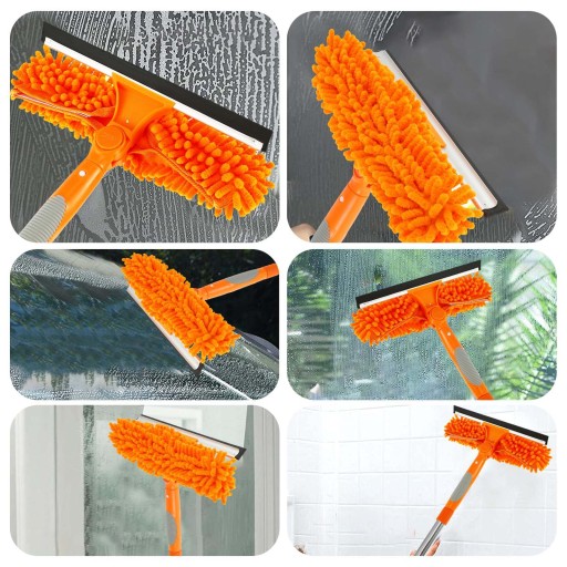 ТЕЛЕСКОПИЧЕСКИЙ СТЕКЛООЧИСТИТЕЛЬ С МИКРОФИБКОЙ И ШЕНИЛЬНЫМ СУТОКОМ, 2 В 1, 180 СМ