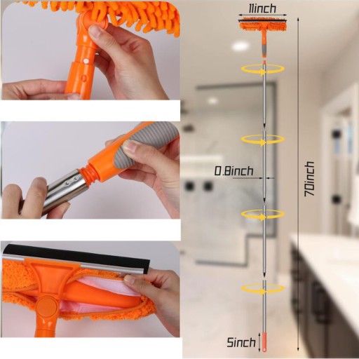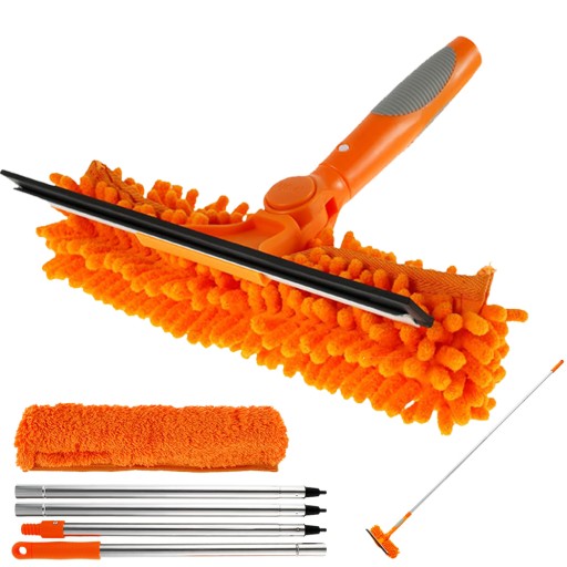 ✅ Teleskopowa szczotka do czyszczenia ze skrobaczką z mikrofibry + pokrycie z tkaniny szenilowej do szklanego lustra ściennego ❗❗❗