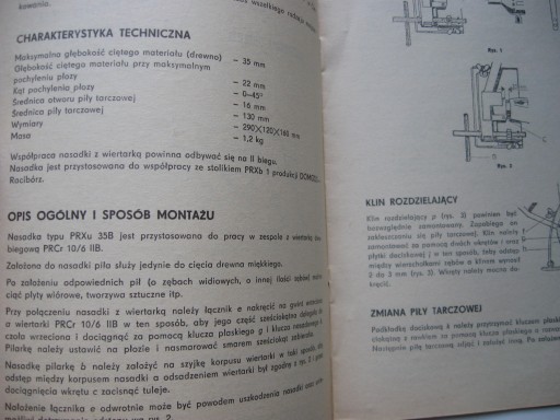 - Nasadka-Pilarka tarczowa - typ PRXu 35B - instrukcja obsłygi, wykaz części , budowa działanie