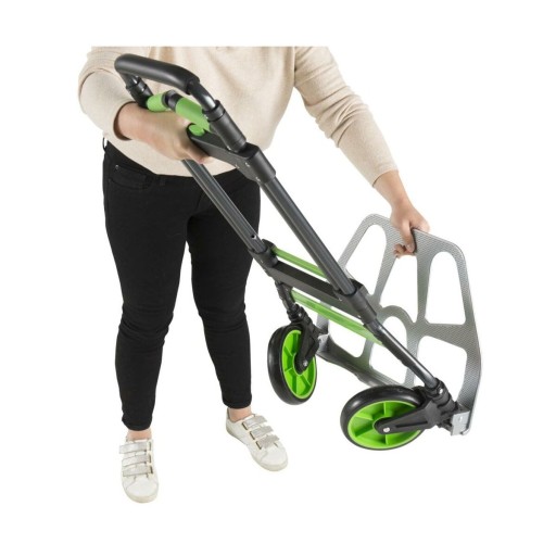 Wózek transportowy składany max. obciążenie 100 kg aluminiowy Standers to wytrzymały wózek transportowy o wszechstronnym zastosowaniu. Duża nośność przy niewielkiej wadze własnej sprawia, że wygodnie i bez problemu przetransportujesz nim przedmioty o masie nawet 100 kg. Dzięki ochronnej piance na rękojeści jest łatwy do uchwycenia i wygodny w trzymaniu. Duże koła umożliwiają poruszanie się także po nierównej powierzchni. Dzięki niewielkim rozmiarom produktu po złożeniu, bez problemu zmieści się w piwnicy lub w garażu. Niezastąpiony podczas przeprowadzek, transportu lub codziennych prac warsztatowych. W zestawie znajdują się dodatkowe gumy mocujące, dzięki którym zabezpieczysz przewożony ładunek.