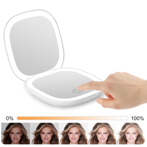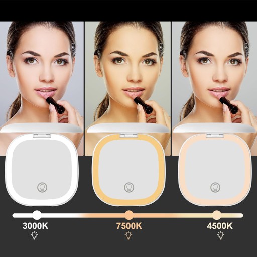- To przenośne lustro jest również wyposażone w długotrwałą baterię. Lustro można ładować i jest wyposażone w kabel do ładowania USB, dzięki czemu lustro jest naładowane i gotowe do użycia.