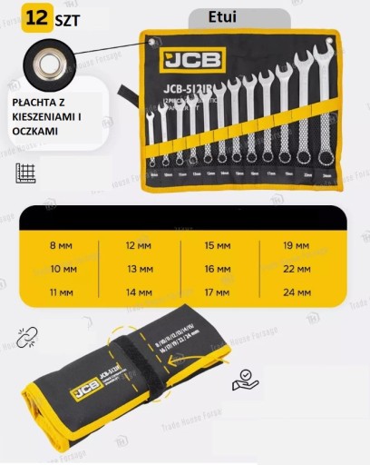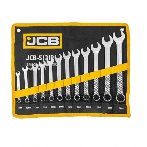Klucze płasko-oczkowe 8-24mm, zestaw 12 sztuk marki JCB.