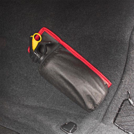 Dzięki naszemu uchwytowi możesz bezpiecznie przewozić gaśnicę w bagażniku swojego samochodu! Mocny rzep sprawia, że gaśnica trzyma się pewnie i nie przemieszcza się w bagażniku!