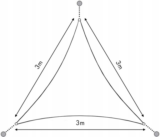 ⭐ Odpowiednie napięcie żagla jest bardzo ważne aby nie tworzyły się nieestetyczne zagięcia i kieszenie wodne. Dlatego ważne aby daszek naciągać po przekątnych materiału (od rogu do rogu).