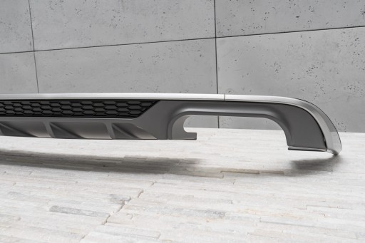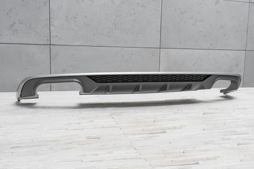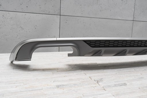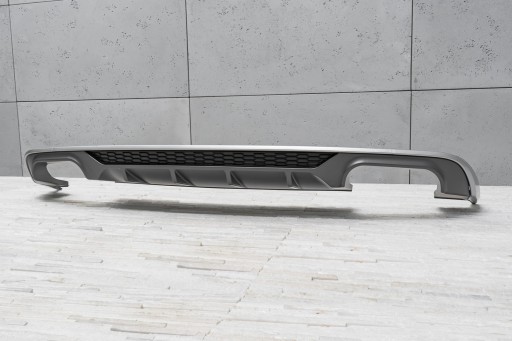 Charakterystyczny, podwójny wydech pozwala osiągnąć efekt stylizacji Audi A3 na wersje S3. Dyfuzor zaprojektowany został tak, aby idealnie współgrać z innymi elementami wykończenia, dopełniając dynamiczny oraz sportowy charakter Twojego auta. Oprócz walorów, wizualnych dyfuzor poprawia aerodynamikę samochodu, a także redukuje szum powietrza, które przepływa pod samochodem. Produkt wykonany został z wysokiej jakości tworzywa motoryzacyjnego ABS w kolorze antracytu oraz czarnym. Dyfuzor dodatkowo zdobi wzmocnienie o strukturze plastra miodu, nawiązujące stylem do sportowych samochodów. W komplecie wraz z dokładką znajdują się elementy montażowe. Dyfuzor jest częścią zamienną, kompatybilną z miejscem montażowym w tylnym zderzaku samochodu. W celu zamontowania elementu. należy zdemontować dokładkę zderzaka, następnie zastąpić ją stylizacyjnym dyfuzorem.