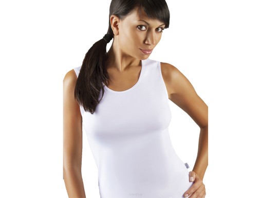 To propozycja dla pań łączących wygodę z elegancją i stylem każdego dnia. Jednolita koszulka występująca w bazowej kolorystyce będzie idealnym uzupełnieniem każdej stylizacji! Została wykonana z najwyższej jakości materiału, zapewniającej dużą wytrzymalość, przewiewność i wysoki komfort noszenia, jest przy tym mięciutka i miła w dotyku niczym puch. Podkreśla figurę, idealnie dopasowuje się do kształtów ciała, nie marszczy się. Ładny krój (dekolt lekko spiczasty wykonczony kwiatowym wzorem) świetnie nadaje się zarówno pod obcisłą bluzkę, jak i do samodzielnego noszenia. Słowem: luksus wygody - przy perfekcyjnej prezentacji.