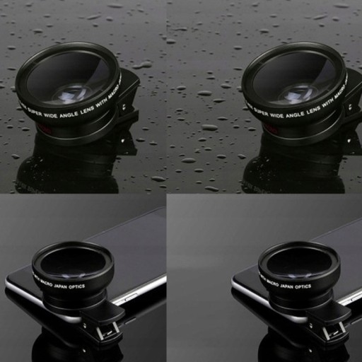 Пряжка для объектива телефона, черная макросъемка + широкий угол обзора