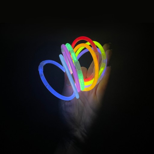 - ELASTYCZNE BRANSOLETKI - są to elastyczne pałeczki, które bez problemu połączymy w bransoletkę czy opaskę. Wykonane z tworzywa sztucznego. Wewnątrz znajdują się dwa składniki chemiczne, które podczas "łamania" łączą się ze sobą, wytwarzając światło.