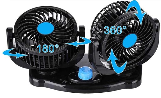 WIATRAK SAMOCHODOWY WENTYLATOR 360° PODWÓJNY REGULACJA CICHY KOKPIT 12V 24V