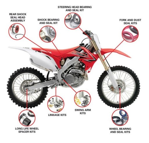 dostępne na innych aukcjach zestawy naprawcze przegubu wahacza, amortyzatora tył, przód, łożyska główki ramy, łozyska + uszczenienia kół.