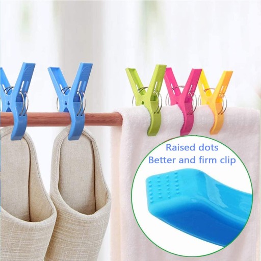 ⑤Bardzo funkcjonalny: duży i wytrzymały, idealny do codziennego użytku domowego. Dopełnienie możliwości przymocowania ręczników na krześle plażowym lub w basenie; lub do zaciskania kołder, liści, zasłon lub ubrań, aby zapobiec wiewaniu w wietrzny dzień.