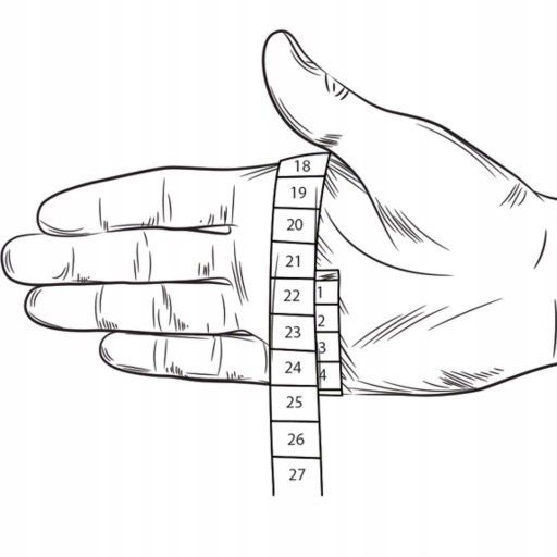 Zmierz miarą krawiecką obwód dłoni.