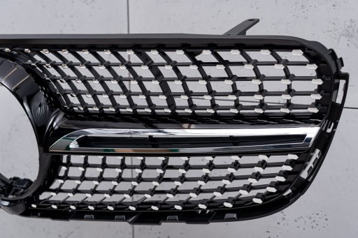 Produkt wykonany jest z wysokiej jakości tworzywa ABS w kolorze czarnym, z chromowanymi elementami. Znaczek MERCEDES nie jest częścią zestawu. Grill DIAMOND jest częścią zamienną, montowaną w miejsce fabrycznego grilla. Zalecamy montaż profesjonalny.