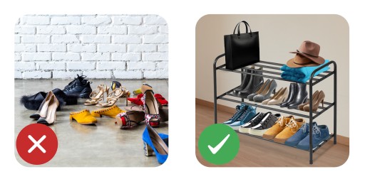 ✅ Dzięki przechowywaniu butów na regale, nie ulegają one zgnieceniu ani deformacji, na dłużej zachowują swój kształt. Dobra cyrkulacja powietrza zapobiega pleśni i nieprzyjemnym zapachom, co wydłuża ich żywotność.