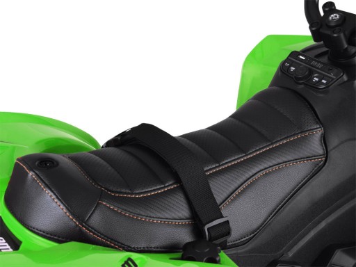 Quad posiada duże koła wykonane z pianki EVA, amortyzatory na tylnej osi oraz szerokie wygodne siedzenie obszyte ekoskórą z pasami bezpieczeństwa. To wszystko sprawia, że jazda jest jeszcze bardziej komfortowa.