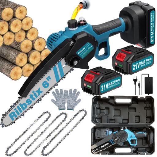 ✅8" CALOWA Piła Łańcuchowa + 2 Akumulatory + 3Łańcuch + Prowadnica