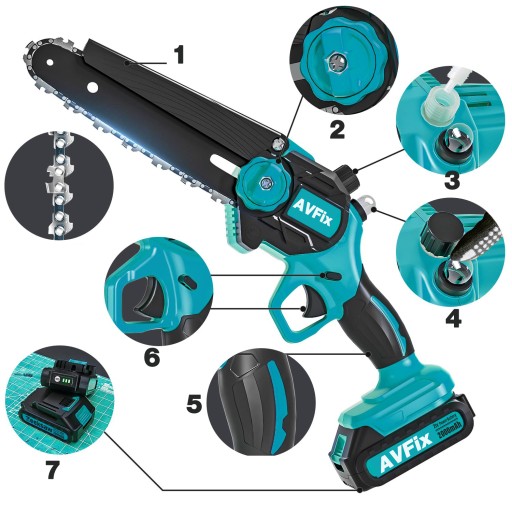 Mini akumulatorowa piła łańcuchowa jest wyposażona w automatyczny system smarowania łańcucha. Dzięki smukłej obudowie i niewielkim rozmiarom ręcznej mini piły łańcuchowej można ją wygodnie trzymać i nie powoduje zmęczenia nawet przy długotrwałym użytkowaniu, dzięki czemu jest odpowiednia dla osób starszych i kobiet.