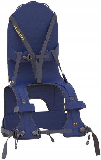 W przypadku użycia: Zabezpiecz dziecko na siedzeniu i zamocuj pasek multi w jednej z dwóch pętli u góry. Zapnij pas środkowy, a następnie nogi paskami. Połóż ręce przez pomarańczowe paski z każdej strony i chwyć dziecko wokół talii (jak zwykle, aby podnieść je na ramionach). Podnieś dziecko na swoje barki.