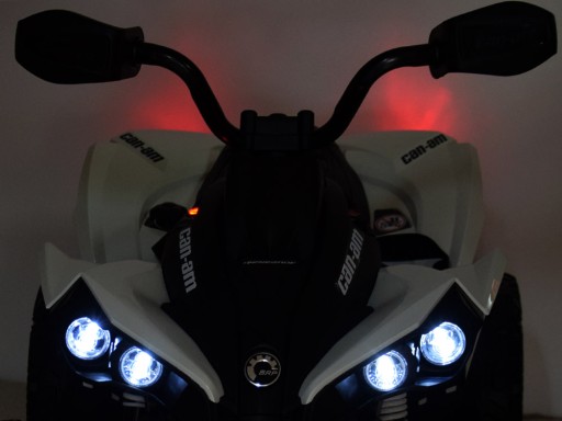 Terenowy Quad CAN-AM amortyzatorach tylnych, zapewni każdemu małemu kierowcy mnóstwo frajdy podczas jazdy. Pojazd został bogato wyposażony. Posiada min. panel muzyczny, oświetlenie przód/tył, miękki fotel obszyty ekoskórą z pasami bezpieczeństwa oraz wygodną kierownicę z osłonkami. Komfortowy quad sprosta wymaganiom każdego kierowcy.