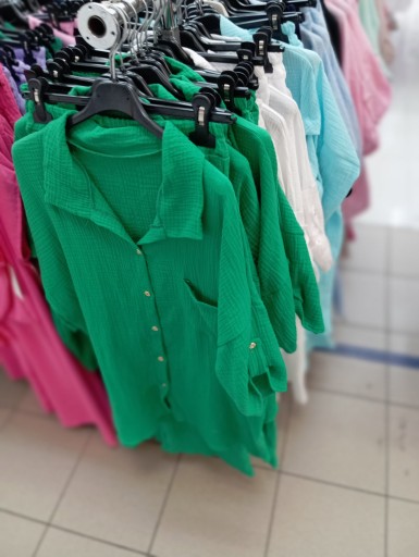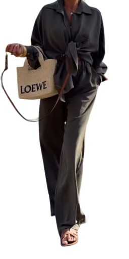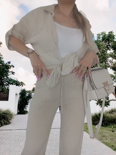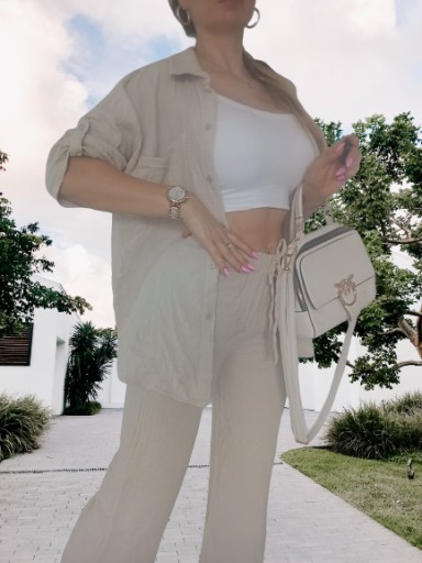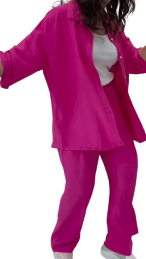 komplet zawiera: koszulę zapinaną na guziki i luźne spodnie