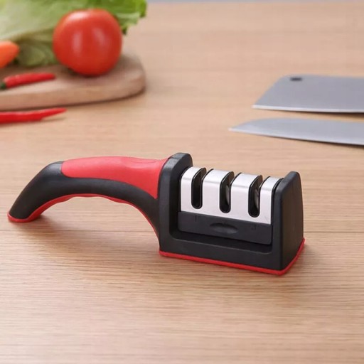 Urządzenie wyposażone jest w ergonomiczny uchwyt, który zapewnia pewne i bezpieczne trzymanie podczas ostrzenia noży.