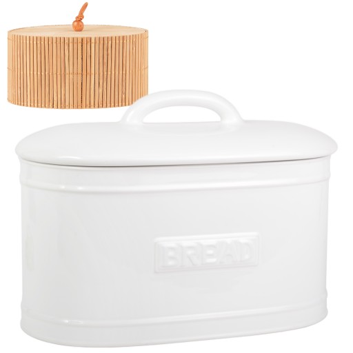 Chlebak CERAMICZNY IB LAURSEN pojemnik na chleb BIAŁY + pojemnik BAMBUSOWY
