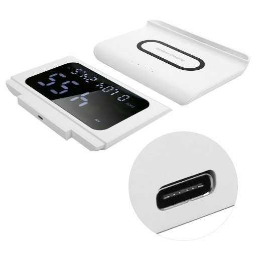 - 1 x bezprzewodowa stacja ładująca telefon 1 x wyświetlacz termometru z kalendarzem