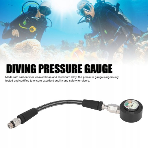 Cecha: 1. Trwały materiał: Wykonany z węża tkanego z włókna węglowego i stopu aluminium, manometr jest rygorystycznie testowany i certyfikowany, aby zapewnić nurkom doskonałą jakość i bezpieczeństwo.