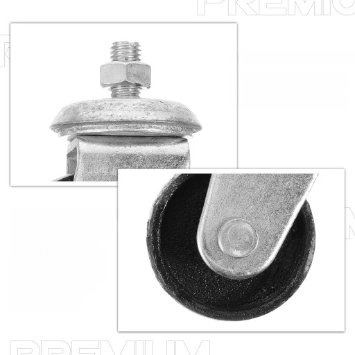 ✅ Pogrubione uniwersalne koło z gwintem 12 mm zapewniające większą trwałość, wielokierunkowa konstrukcja koła ułatwiająca przesuwanie podnośnika.