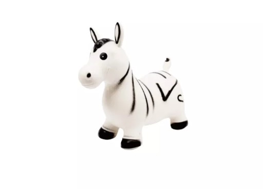 Zebra została wykonana z gumy. Jest ona w kolorze biało-czarnym. Ma paski jak prawdziwa zebra oraz duże czarne oczy. Po nadmuchaniu dziecko może usiąść na niej i skakać, jakby jeździło na koniku.