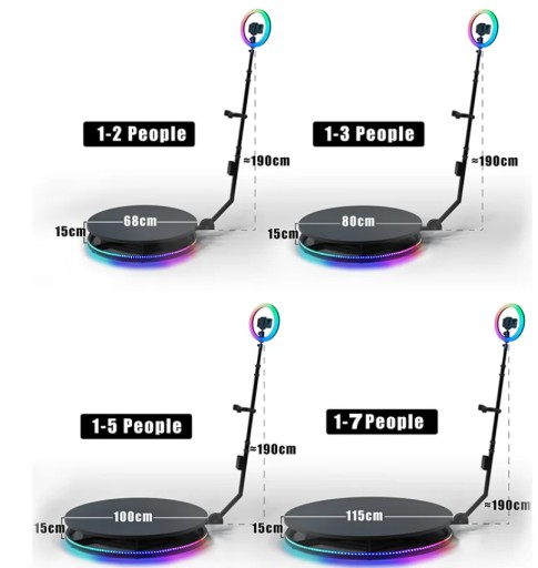 Fotobudka jest wyposażona w pilota typu push-buttton, który może kontrolować prędkość i kierunek obrotu.