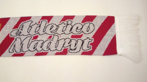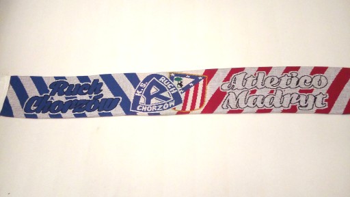 RUCH Chorzów-ATLETICO Madryt--szal dziany łączony,dwustronny,na końcach białe frędzle.