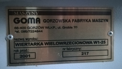 Wiertarka wielowrzecionowa Goma W1-25 - stan idealny