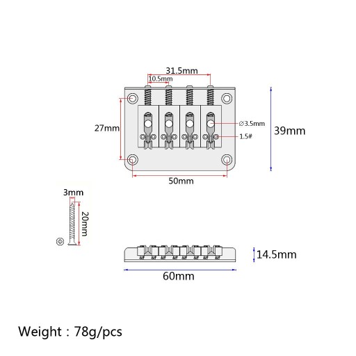 4-strunowy mostek gitarowy ze śrubami kluczowymi do części do elektrycznej gitary basowej.