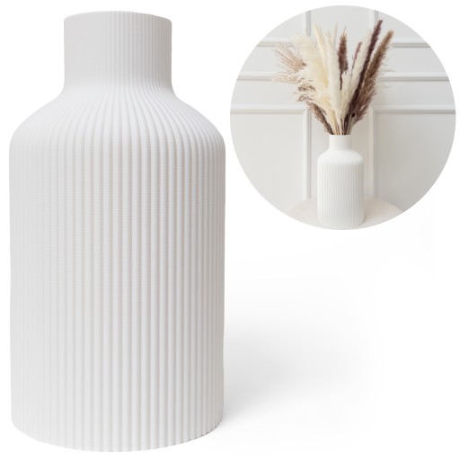 Wazon KAI polskiej marki Status Artis Decor jest prosty w formie, ale dzięki teksturze zyskuje interesujący wizualny efekt, co czyni go stylowym elementem dekoracyjnym do wnętrz. Powierzchnia wazonu ma wyraźne, pionowe żłobienia biegnące od podstawy aż do górnej krawędzi, co nadaje mu elegancki i nowoczesny wygląd.