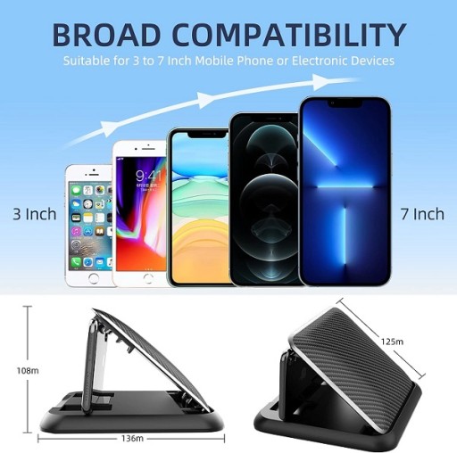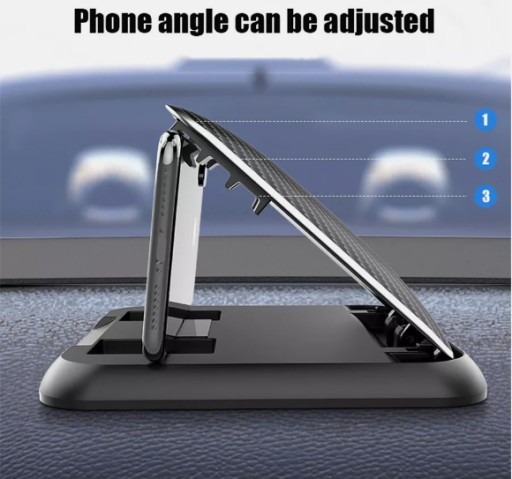 ‹ STABILNE MOCOWANIE I KONSTRUKCJA WIELOKĄTOWA › Podstawa tego uchwytu na telefon komórkowy jest wykonana z materiału polimerowego mocno przyklejonego do platformy i nie będzie się trzęsła, ślizgała ani spadała podczas jazdy po wyboistych drogach. Telefon komórkowy jest umieszczony poziomo z wycięciem, dzięki czemu można go regulować w pionie w górę i w dół pod różnymi kątami.