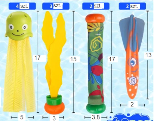 ZABAWKI DO WODY BASENU WANNY DO NURKOWANIA ZESTAW 26 SZTUK KOLOROWE