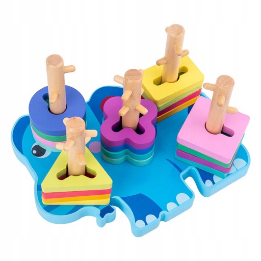 Drewniany kształt geometryczny Dopasowanie klocków Kolor Kognitywne zabawki edukacyjne Słoń