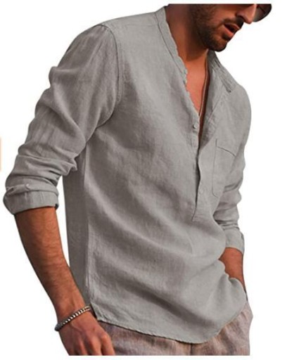 Мужская повседневная рубашка с воротником стойкой