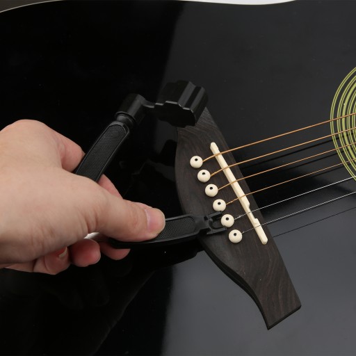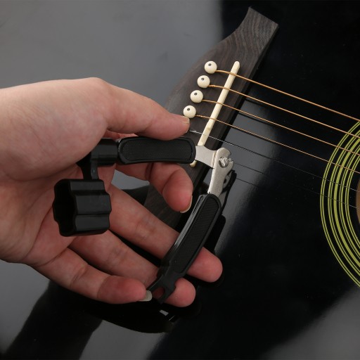 2. Kapodaster gitarowy jest powszechnym i niezbędnym narzędziem używanym podczas gry na gitarze lub innym instrumencie strunowym. Można go łatwo zmienić jedną ręką, aby przełączać się między postaciami.