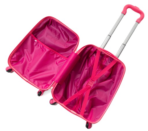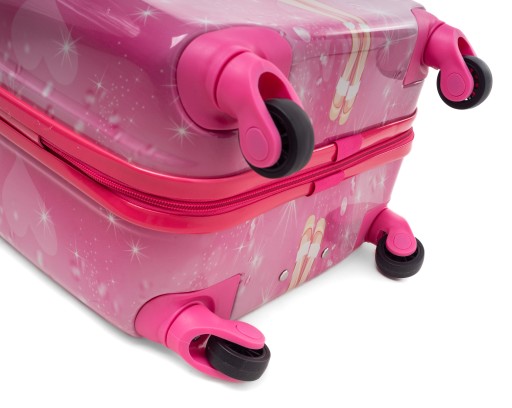 Dziecko może swobodnie prowadzić walizkę, dzięki czterem trwałym, kauczukowym, bezszelestnym kółeczkom.