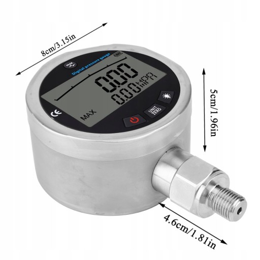 PROFESJONALNY MANOMETR METALOWY,MANOMETR CYFROWY Waga produktu z opakowaniem jednostkowym 0.3 kg