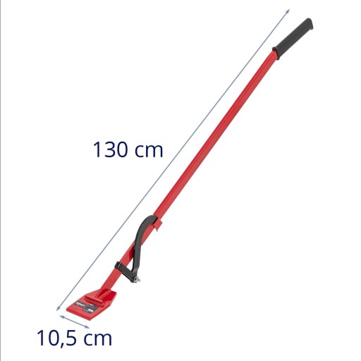 Sprzęt ma długość 130 cm i jest wykonany ze stali odpornej na korozję. Górna część obudowy jest zrobiona z wytrzymałego tworzywa sztucznego. Zapobiegnie ono poślizgowi i zmniejszy ryzyko obrażeń w pracy. Długi uchwyt zwiększy efekt dźwigni i przeniesie siłę w sposób optymalny i delikatny. Wytrzymały obracak do kłód jest przeznaczony do dużych obciążeń. Powłoka proszkowa ochroni narzędzie przed rdzą – idealne rozwiązanie, gdy chcesz używać narzędzia na zewnątrz i w wilgotnym środowisku.