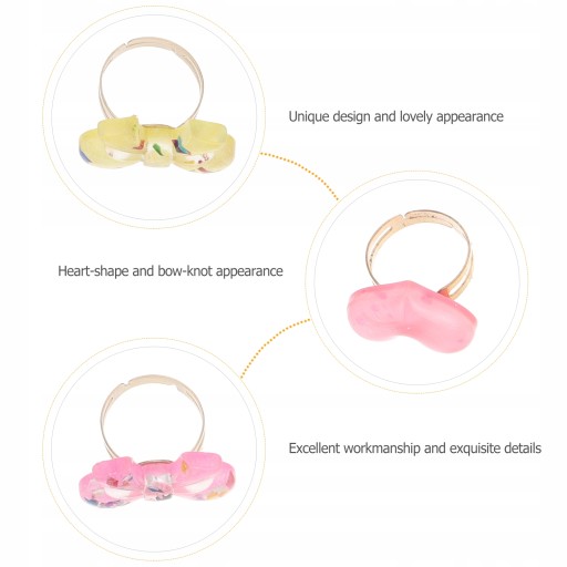 Szukasz kreatywnego i ładnego prezentu dla swoich dzieci? Szeroko stosowany na specjalne okazje, zwłaszcza na ceremonię ukończenia szkoły lub inne specjalne okazje. Te dziecięce pierścionki wykonane są z najwyższej jakości materiału akrylowego, z uroczą gwiazdą, kokardką i wzorem w kształcie serca, doskonałym wykonaniem i pięknymi detalami, sprawiają, że dzieci wyglądają pięknie i uroczo.